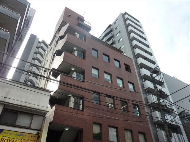 1980年竣工のオフィスビル、外観は赤茶色のタイル張りで落ち着いた雰囲気のオフィスです。