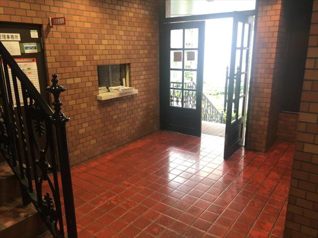 1982年竣工、落ち着いた茶系のモザイクタイルがレトロ感のある分譲マンションです。