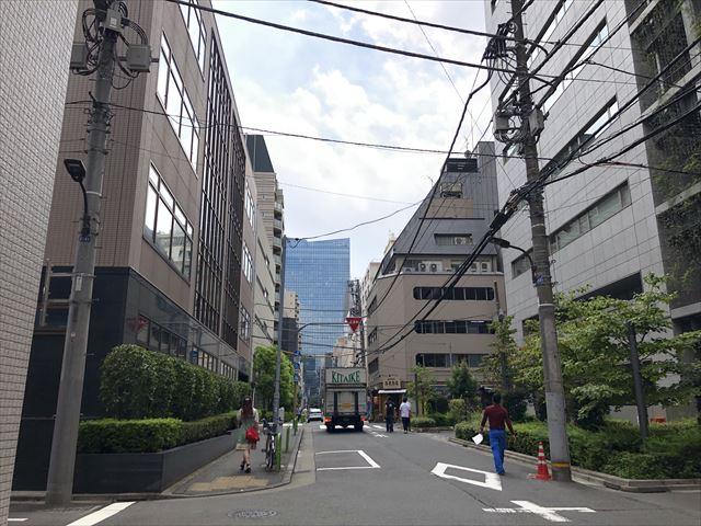 日比谷通りから少し入った場所に立地、周辺は比較的落ち着いたオフィス街です。