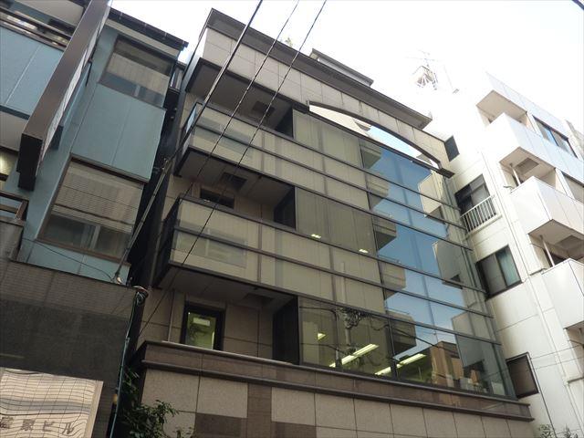 1993年竣工、御影石とガラスを使った高級感あふれる佇まいの外観のオフィスビル。新耐震基準をクリアしています。